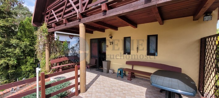 Dojazd do ROD bardzo wygodną drogą asfaltową. Domek pobudowany w 2005 roku, na bieżąco impregnowany, o trzech kondygnacjach, a każda z nich o powierzchni ok. 35 m2.