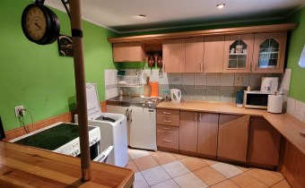 - kuchnia (pełnowymiarowa lodówka, piekarnik elektryczny z płytą elektryczną 4-palnikową, pralka)