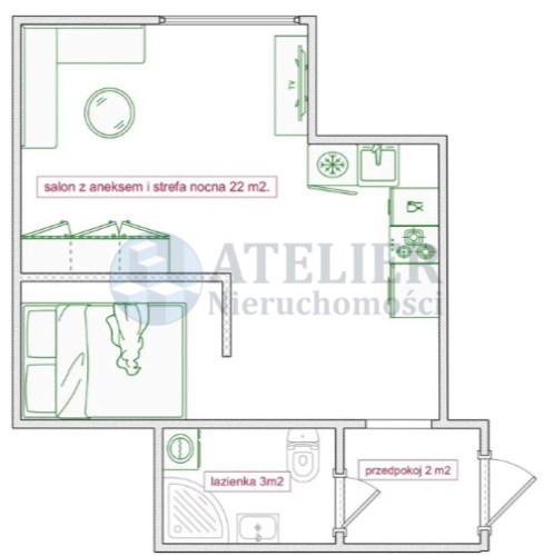 • Przestronny salon z aneksem kuchennym