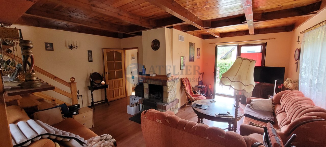 - piec węglowy (koza), który ogrzewa cały domek,