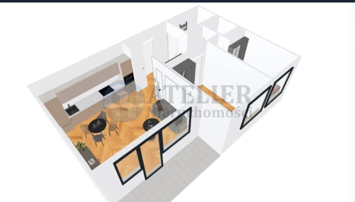 przestronny salon z dużym aneksem kuchennym,